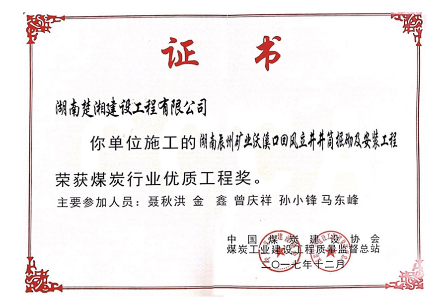 煤炭行業(yè)“優(yōu)質(zhì)工程獎(jiǎng)”